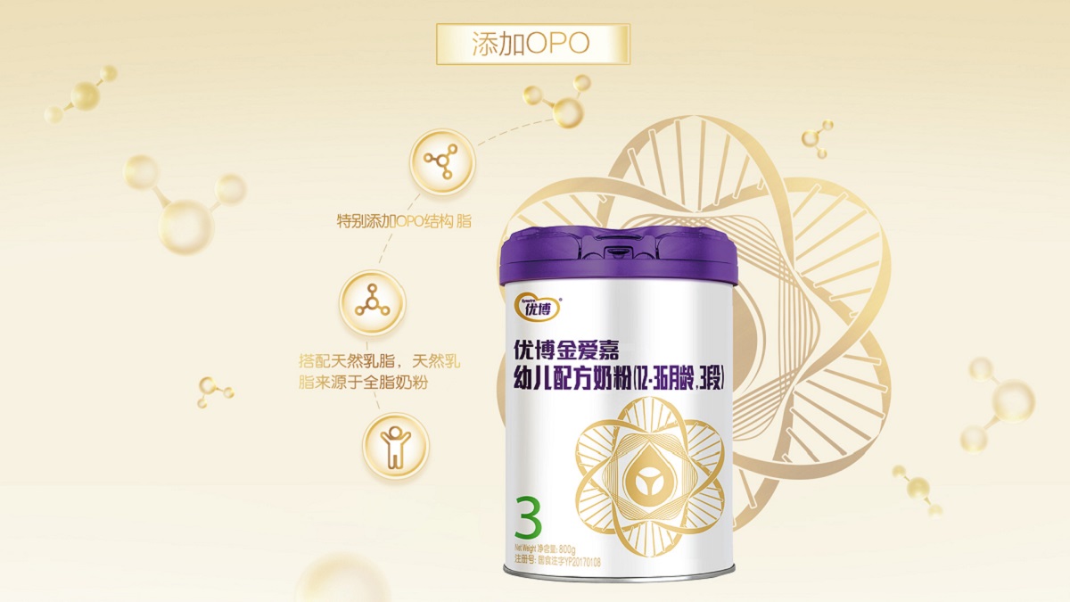優(yōu)博金愛嘉在遵循優(yōu)博仿生科學(xué)原理的基礎(chǔ)上,特別添加OPO結(jié)構(gòu)脂,親體舒適,更易吸收。