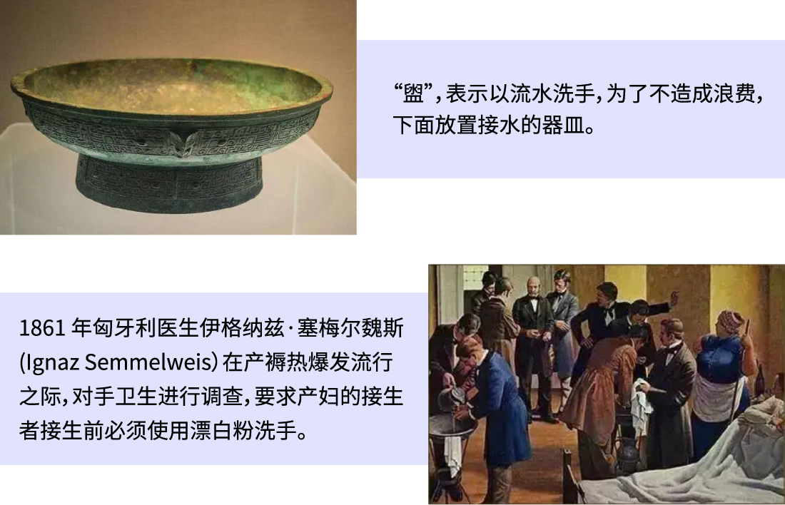 據(jù)考古學(xué)家考證,大約在2500年前,古人就以流水洗手,以避免雙手交叉污染。