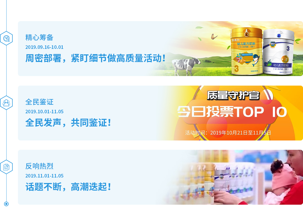 為了感恩行業(yè)與消費(fèi)者對(duì)寶素力/喜素力奶粉的信賴與支持,廣州美素力企業(yè)啟動(dòng)“2019質(zhì)量守護(hù)官”活動(dòng),36位美素力人與渠道、消費(fèi)者共同為寶素力&喜素力代言,共同守護(hù)孩子的未來!